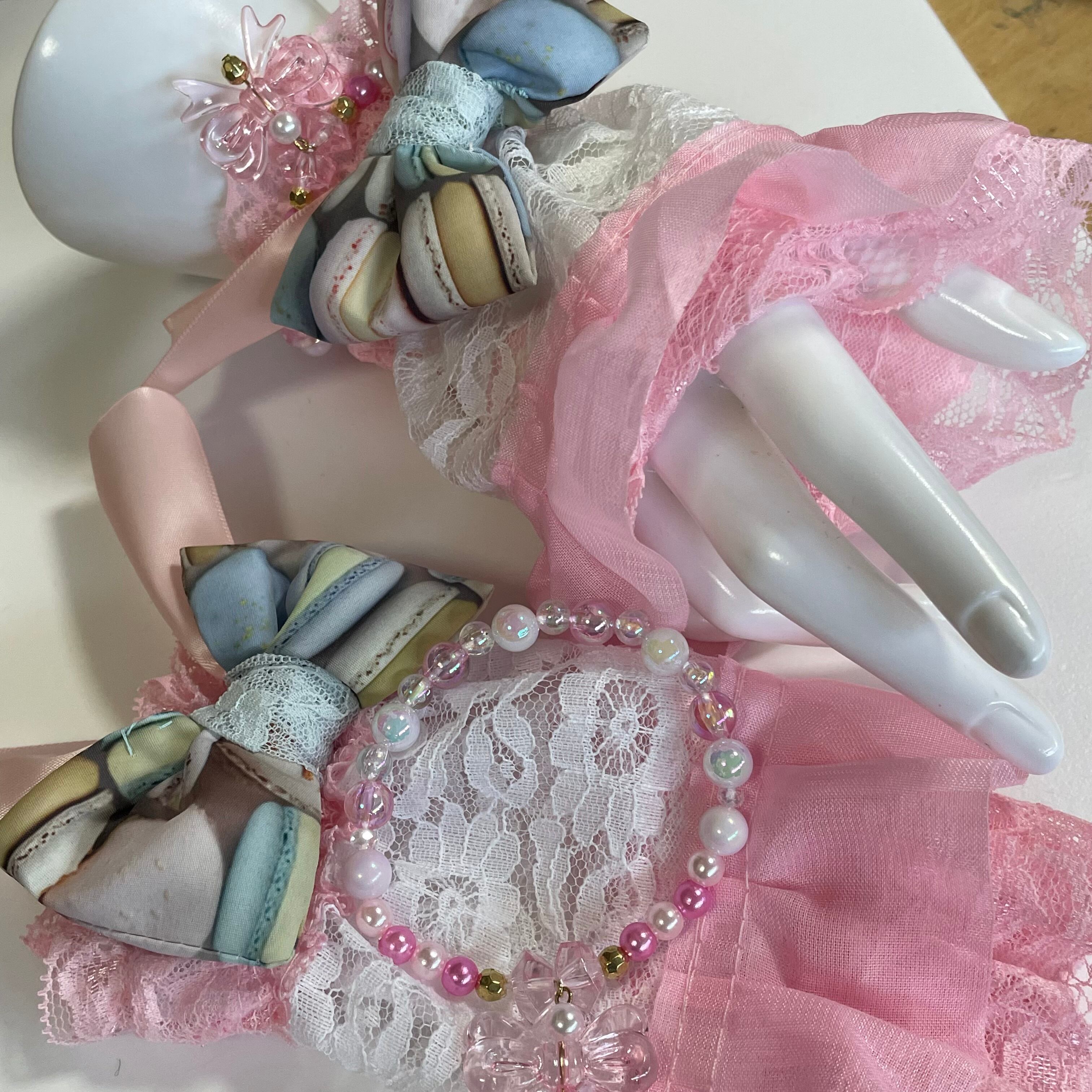 大きめのリボンには、カラフルなマカロン柄をあしらい、スイーツのような可愛らしさをプラス。