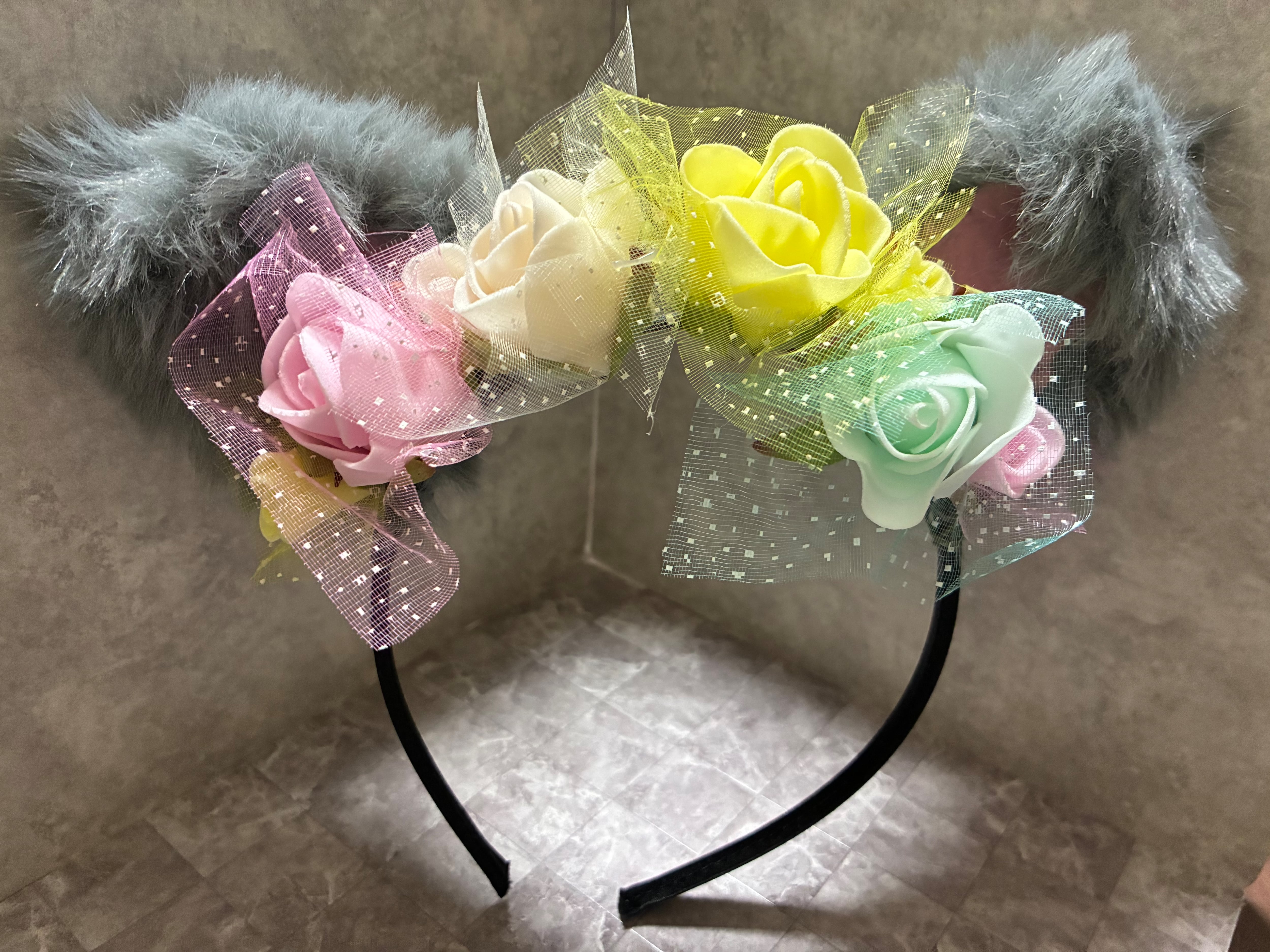 愛らしい猫耳が、あなたのヘアスタイルに華やかさとロマンチックな雰囲気をプラスします。この「猫耳カチューシャ 薔薇」は、優美な薔薇のデザインと柔らかな色合いが特徴で、まるであなたの髪に花のような魅力を宿しているかのような印象を与えます。